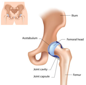髖關節位於盤骨下端接著大腿骨的位置。這是一個轉動關節,能令我們可以向前、向外、向內、向後提腿。 大腿骨的頂部及盤骨內有一個軟骨組織來幫助減少承托身體的壓力和大腿活動的磿擦。髖關節外層有不同 韌帶及肌肉互相鞏固及承托髖關節活動及重量。( 圖ー至圖三)