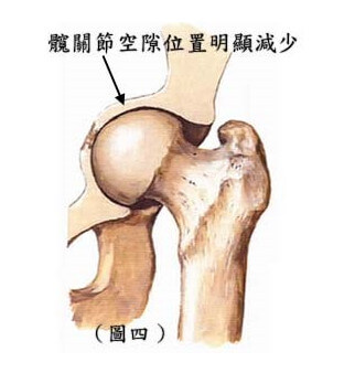 由於大腿骨頂部連接髖關節位,如大腿骨頂部骨骼懷死亦會產生髖關節痛楚。由於該處的血液循環不 足夠而引發頂部骨頭懷死。患者多數介乎於 25 至 45 歲,而 40% – 70% 患者最後亦會感到兩邊髖關節痛。 過量酒精及服用類固醇藥物都會嚴重影響這個病症。患者早期沒有痛的徵狀,只是覺得髖關節有些緊硬, 到後期當大腿骨頂部完全下陷,髖關節痛的情況近似退化性關節炎的徵狀。( 圖五 )