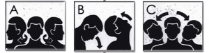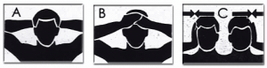 動作C:眼朝前方,然後把頭部側向左方維持五秒,返回原位,再把頭部側向右方維持五秒,左右方各重複三次。
