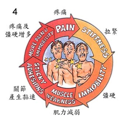 受傷後,生在軟組織上的新纖維是沒有彈性的,肌肉因而變得硬直且繃得十分緊,大大降低活動能力。