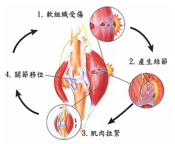 當肌肉、韌帶及根部受傷後會漸漸變得脆弱、拉緊和發炎。在這些軟組織上便會產生一些細微的撕裂。