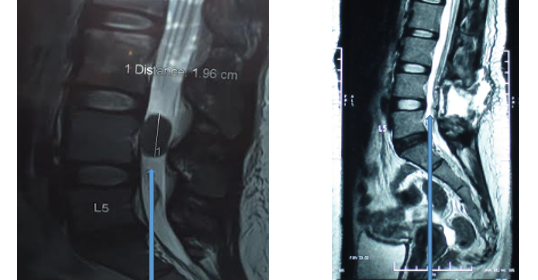 後經腦及脊椎神經外科醫生(Neurosurgeon)進行切除腫瘤手術,由於患者的腫瘤壓住馬尾神經引起神經缺損,所以術後病人的腳痛雖然立即改善,但還是覺得右腳輕微乏力、右腳趾也有麻痺感。經腦神經外科醫生轉介到筆者處進行術後Cox®減壓治療,經過三星期治療後患者術後的腳部乏力及腳趾麻痺大大獲得改善。由於患者還有腰椎第五節的椎間盤突出問題,故此亦可利用Cox®椎間盤減壓治療法處理第五節突出的軟骨。