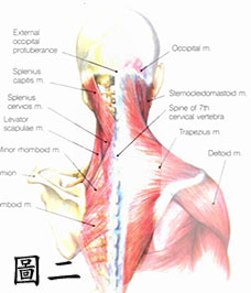常人的頸部有一個後凹的弧度。它是由七節脊椎骨組成,用來支撐大約 15-17 磅重的頸部 ( 圖一 )。