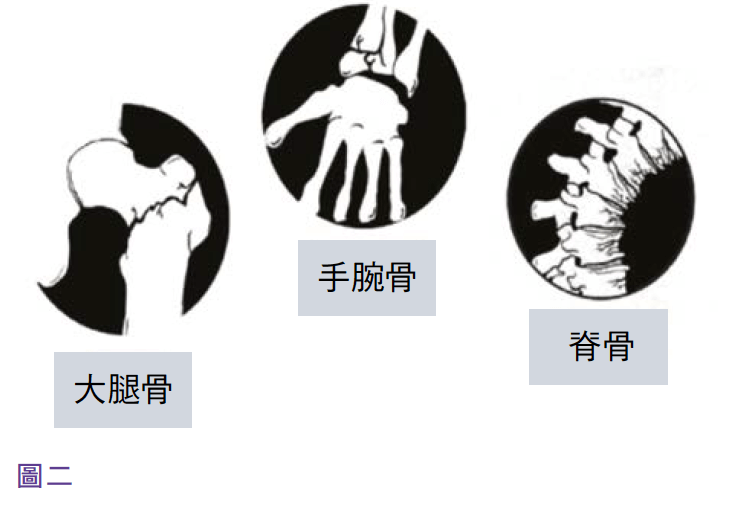 The patient’s bone density can lead to bone fractures, increased pressure on the cartilage tissue between bones and bones and thinning, the most obvious is to make the spine lean forward, leading to slouching, gradually forming a hunchback, while the cervical spine degenerate the head is protrude, because the ribs are on top of the pelvic bone, pressed to the patient’s abdomen, affecting ingest amount of food, and the patient will have bone pain in the back and lower back. Due to the fragility of the bones, patients are also prone to fractures, especially the elderly, who are at risk of accident falls, and sometimes even spontaneous fractures. Among them, the spine, thigh bone, and wrist bone are more commonly broken site, and if the femur is broken, the impact is more serious. (See Figure 2)