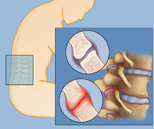 Facet syndrome is an arthritis disease which causes pain in the spine and neck. As the joints between the spine degenerate, the soft tissues in the small joints begin to rupture and inflame which causes pain in nearby nerve endings. Medicine, manual therapy, joint injection, nerve blockage and nerve radio frequency treatments can relieve pain.