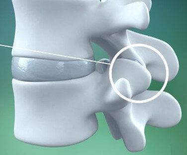 Figure 2: Top circle indicates a healthy facet joint. Lower circle shows the facet joint capsule degenerate.