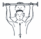 双手握毛巾或木棍两端,然后做出举高及放下的动作。